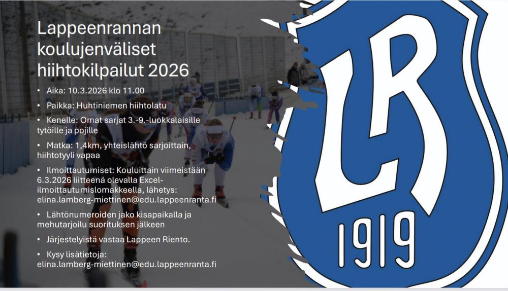 Kutsu koulujenvälisiin hiihtokilpailuihin on mennyt kouluille. Ilmoittautuminen oman koulun kautta!